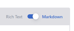Le bouton à bascule permet de passer de l'éditeur de texte riche ("Rich Text") à l'éditeur de texte brut au format Markdown ("Markdown") :