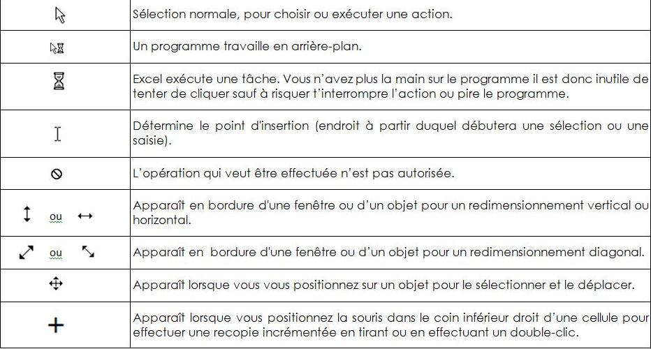 # 2. Les différents pointeurs de la souris: