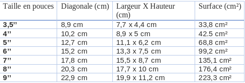 Le tableau ci-dessous donne les différences entre les différentes générations :