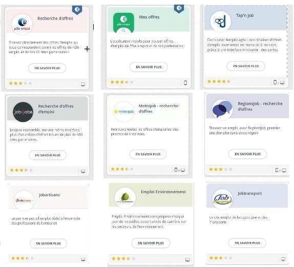 Quelques exemples de sites mentionnĂ©s sur lâEmploi Store et partenaires de PĂŽle Emploi :