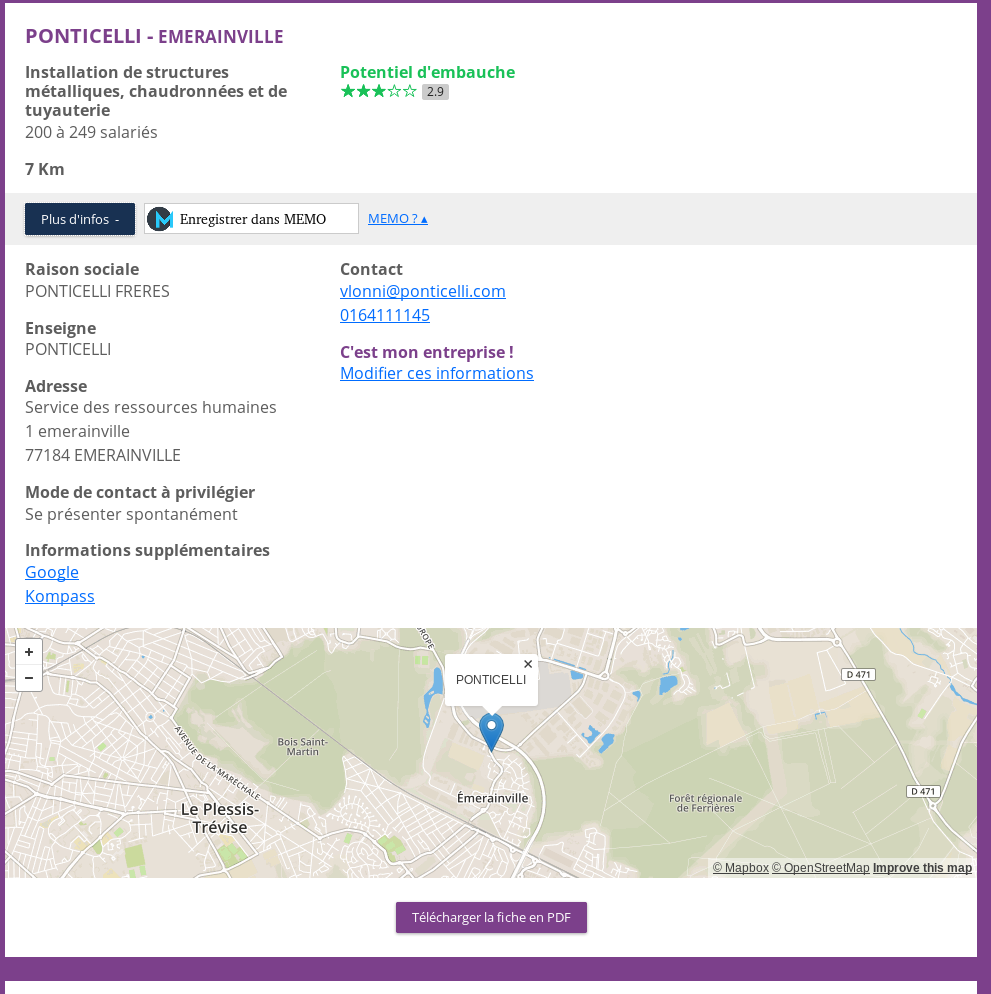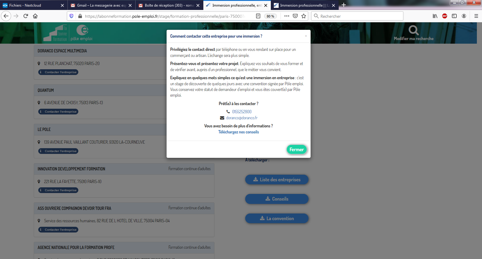 A partir du bouton « Plus dâinfos + » prĂ©sent sur chaque bloc, il est possible de trouver plusieurs renseignements nĂ©cessaire Ă la candidature spontanĂ©e.
