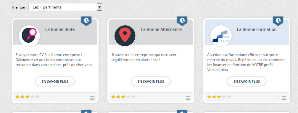 Les blocs sont triĂ©s par « potentiel dâembauche » par dĂ©faut. Ce qui signifie que les premiers rĂ©sultats ont plus de chance que les suivants dâembaucher sur un mĂ©tier donnĂ© (algorithmes du site Ă lâĆuvre).