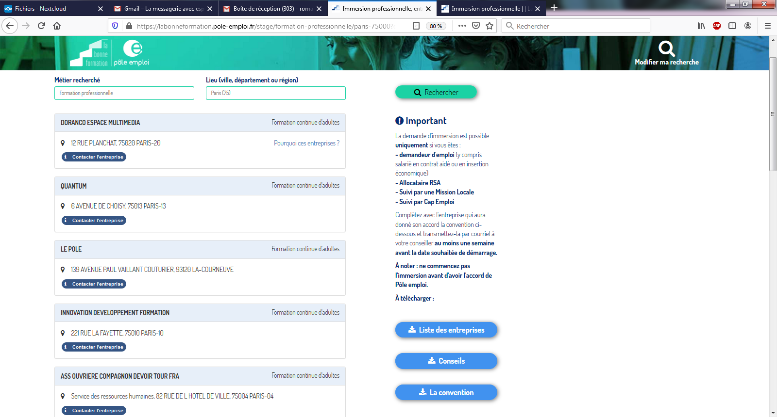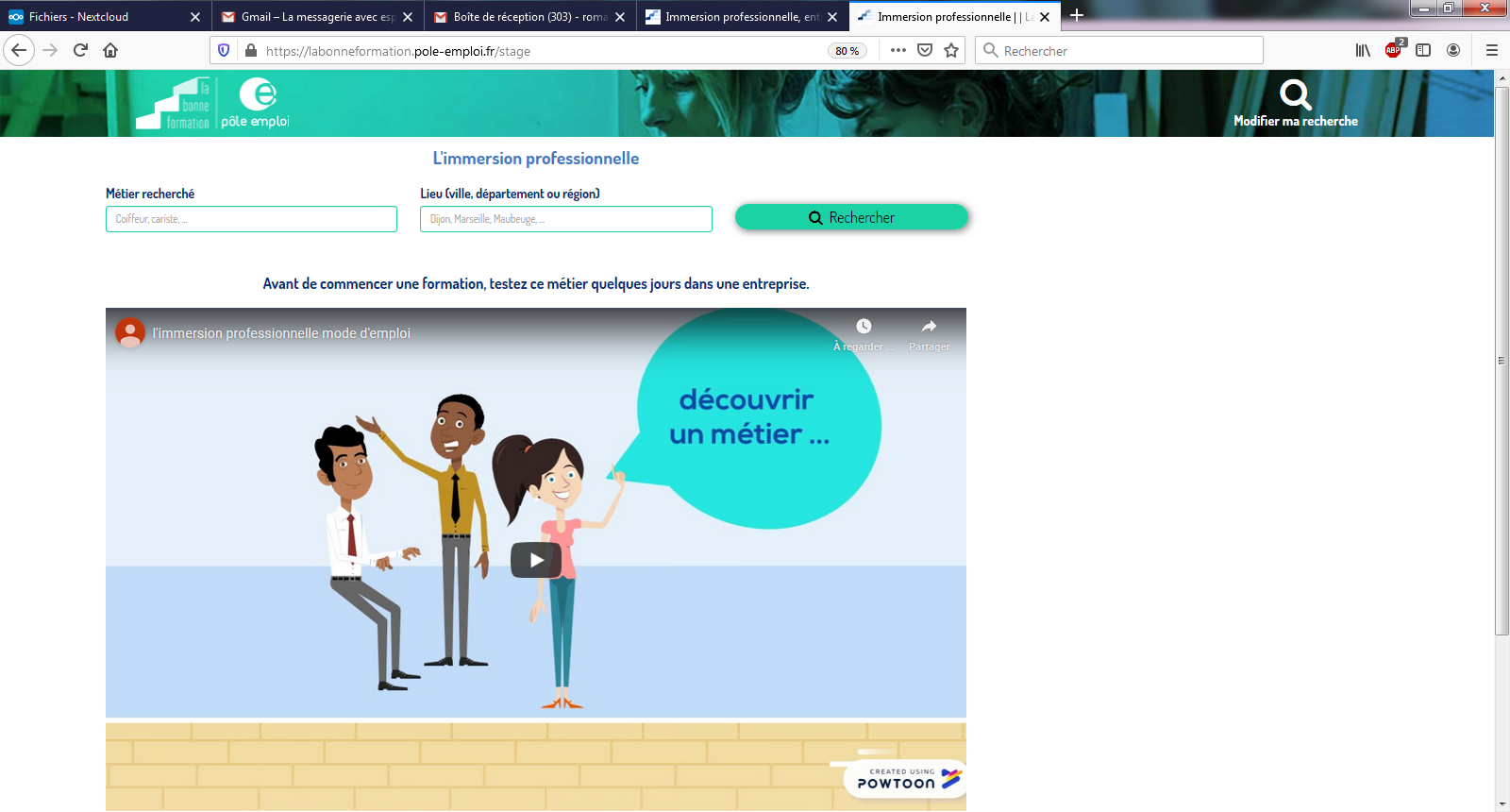 - Avoir un compte PĂŽle Emploi si des recherches veulent ĂȘtre faites sur le site de PĂŽle Emploi.