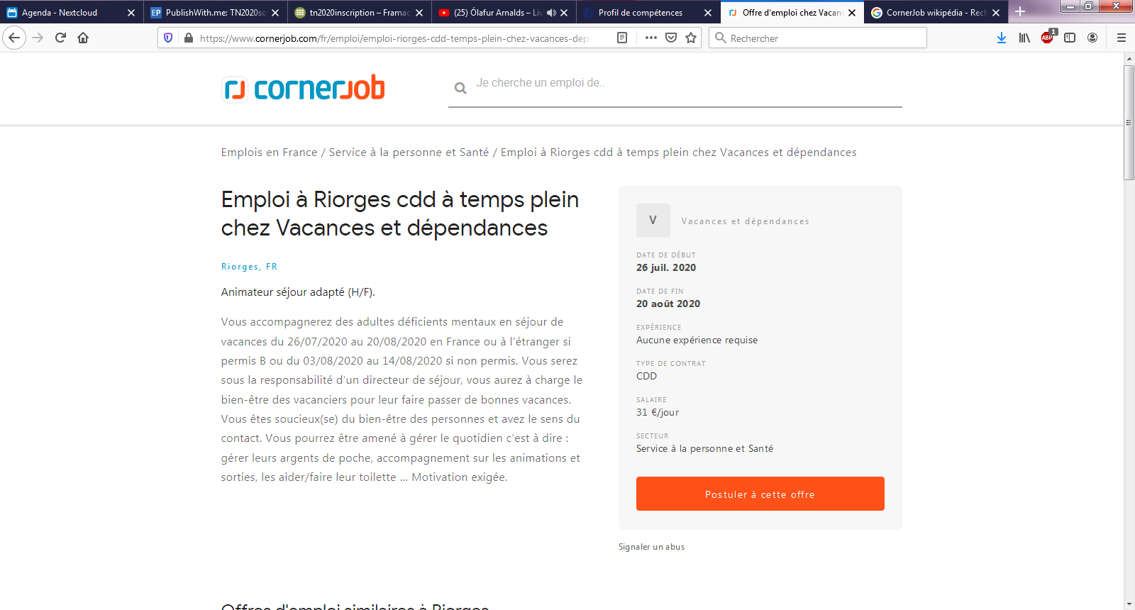 Page dâune offre dâemploi : descriptif, date de dĂ©but et de fin (ici CDD), expĂ©rience demandĂ©e, salaire, secteur dâactivitĂ©...