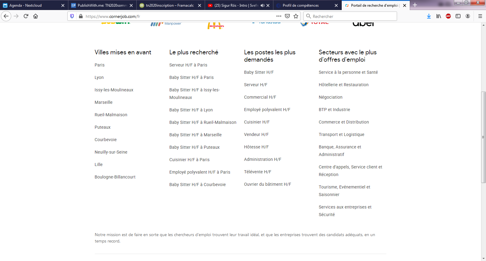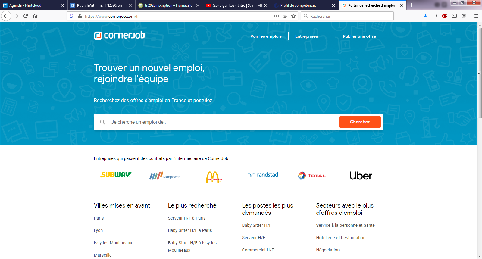 CornerJob est un jobboard qui recense tout un ensemble dâoffres dâemploi. Il est plutĂŽt axĂ© sur certains secteurs dâactivitĂ© comme lâhĂŽtellerie, le service Ă la personne, BTP et industrie.